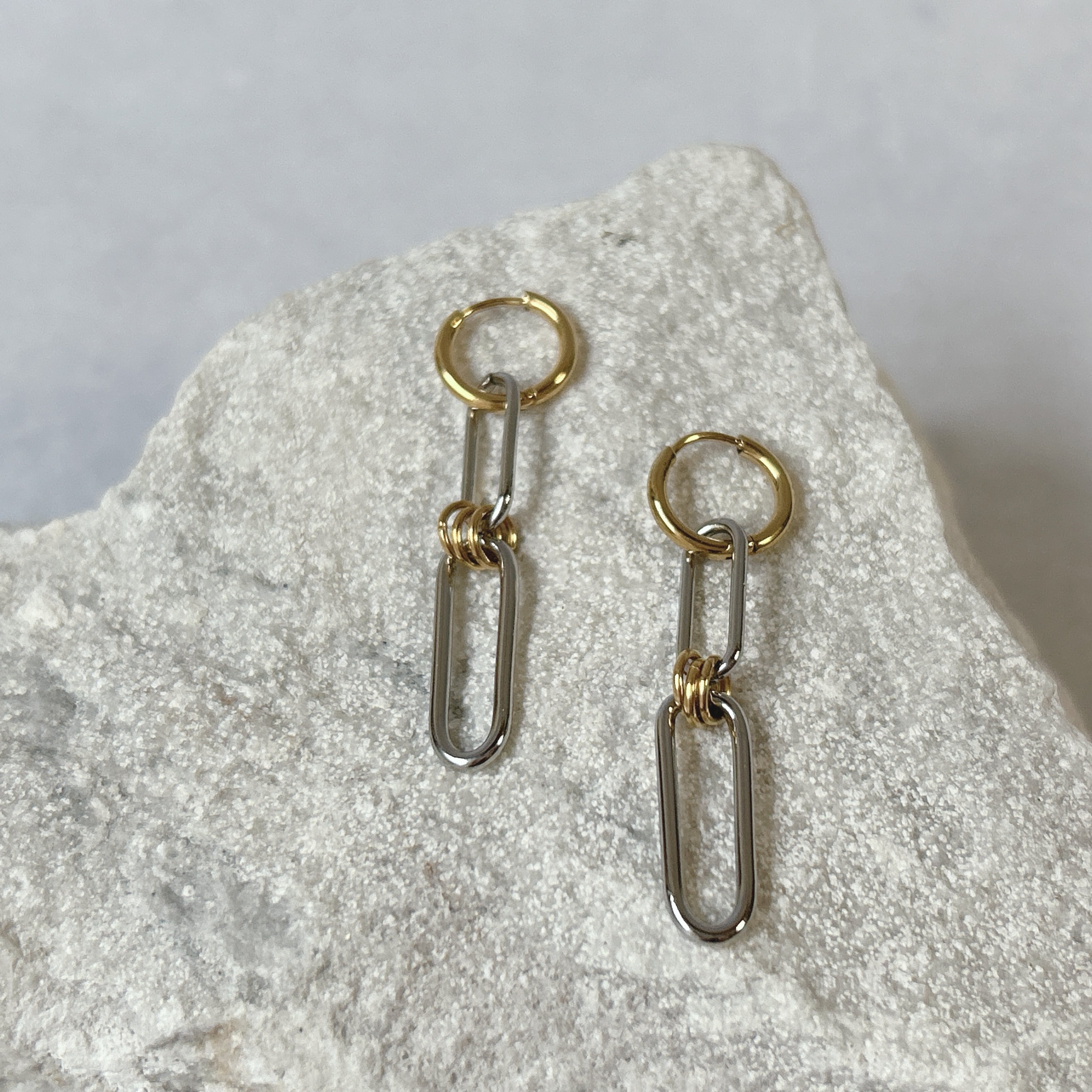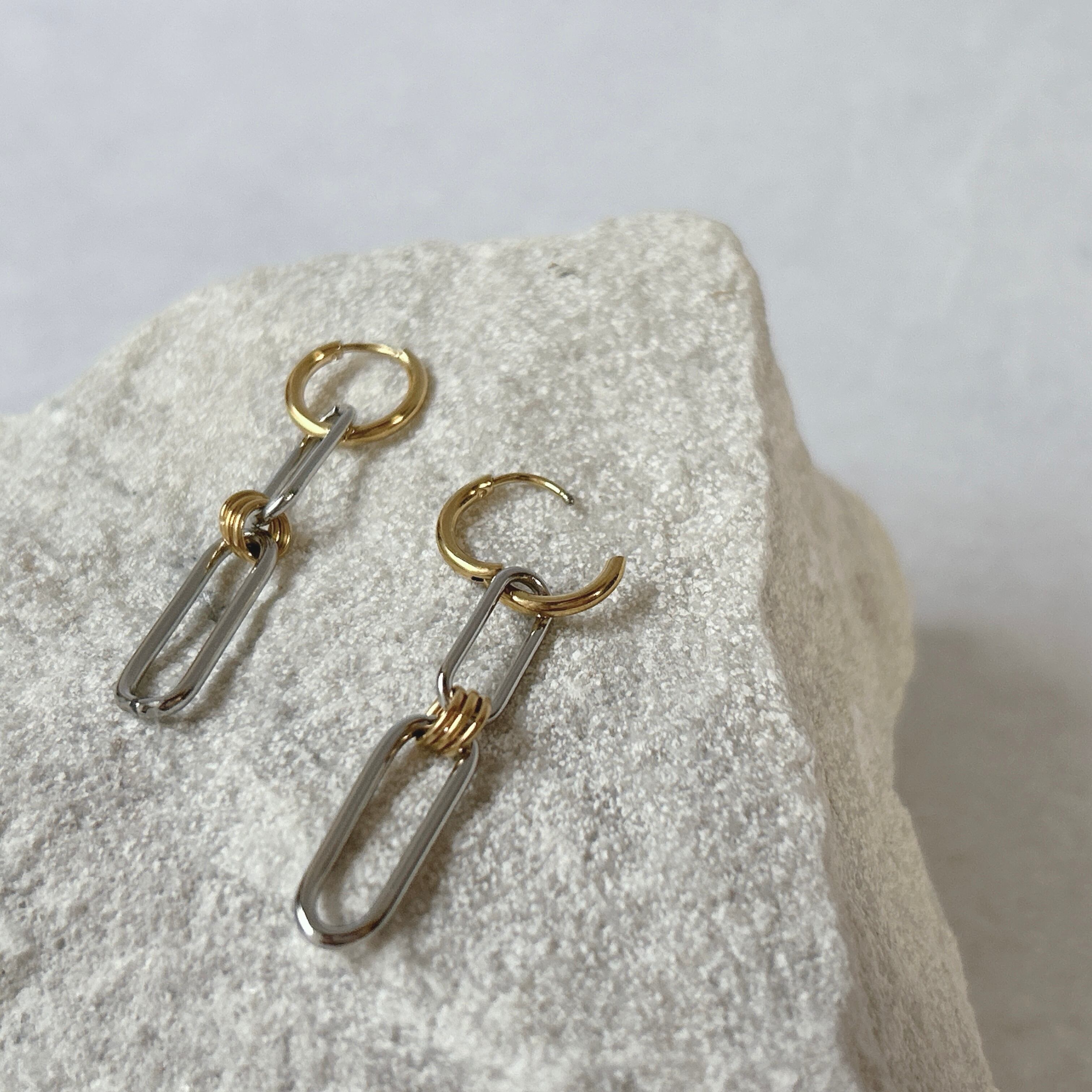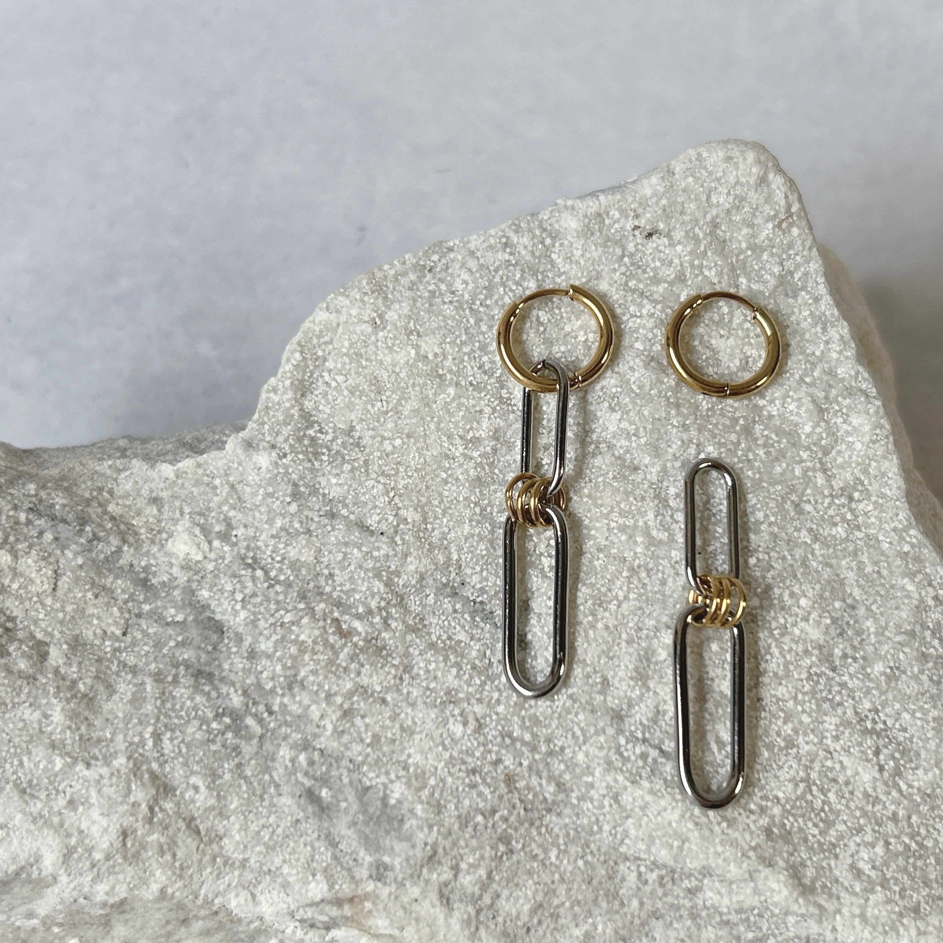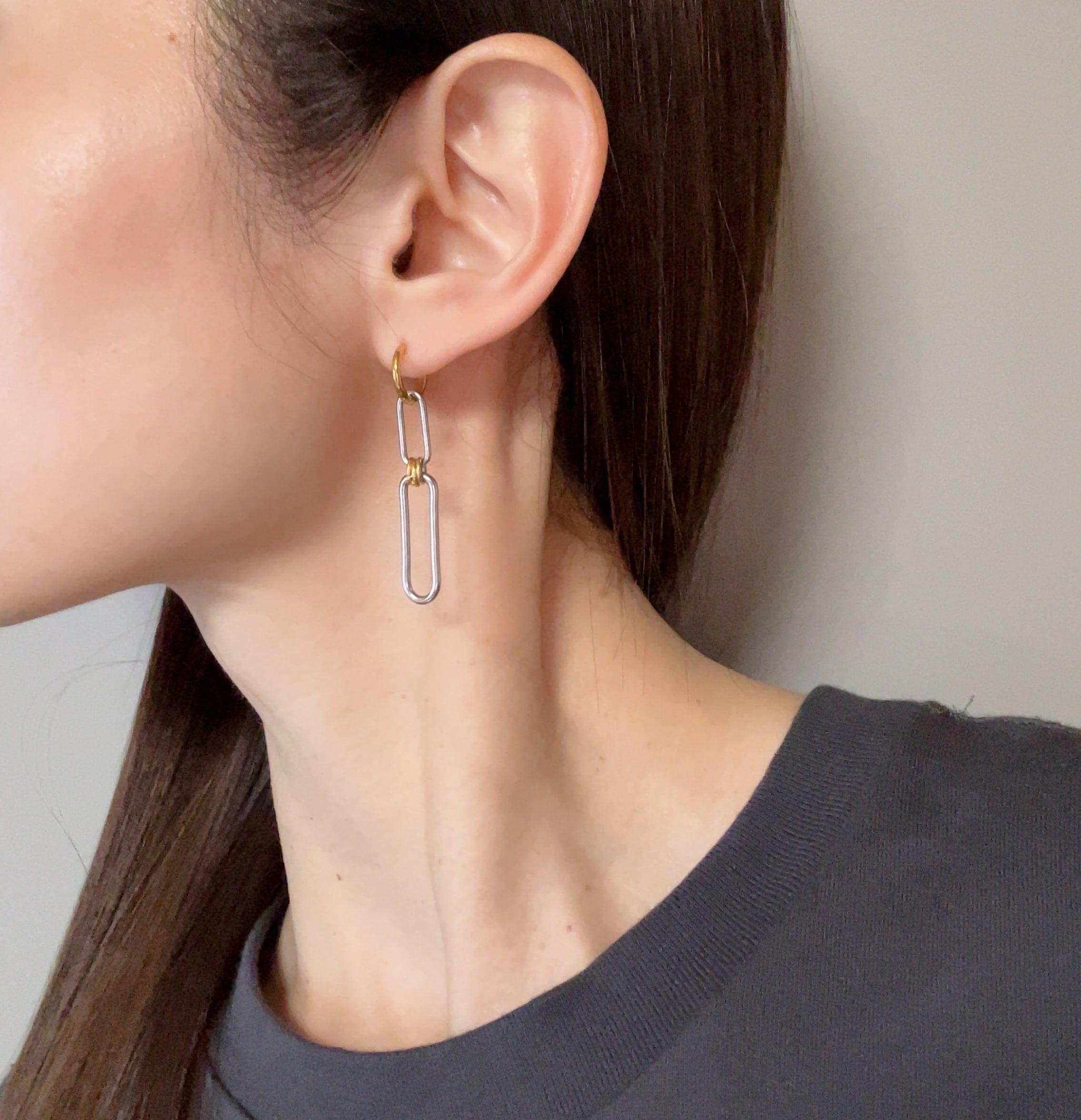 ゴールドとシルバーが程よくミックスされたチェーンピアス。