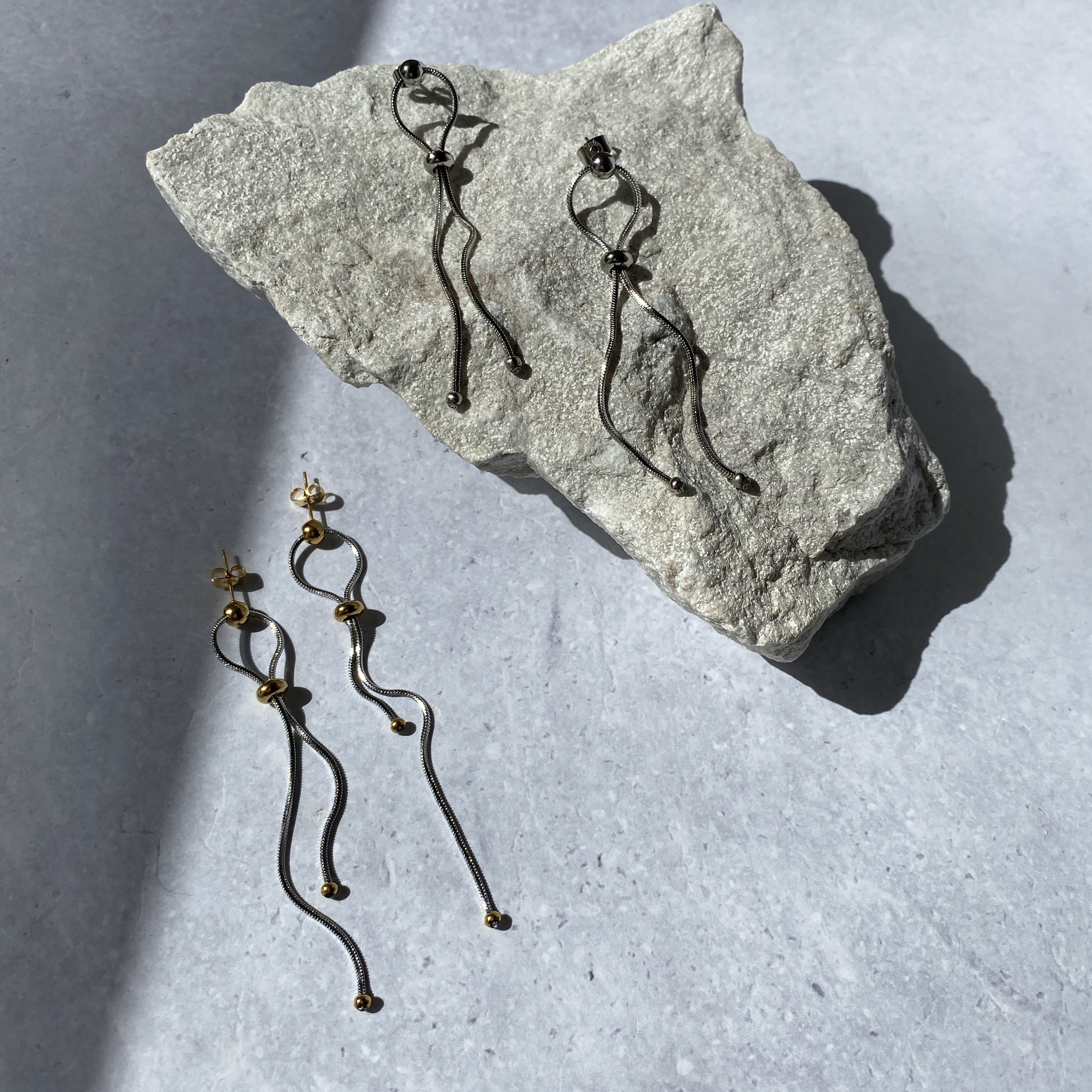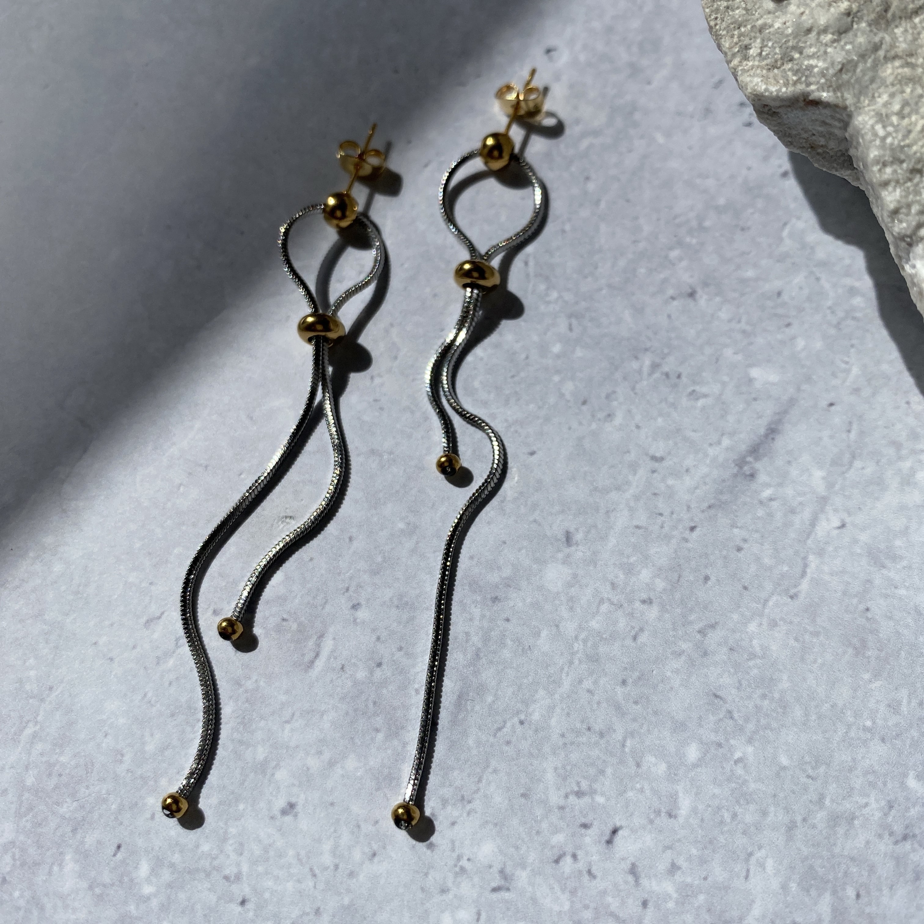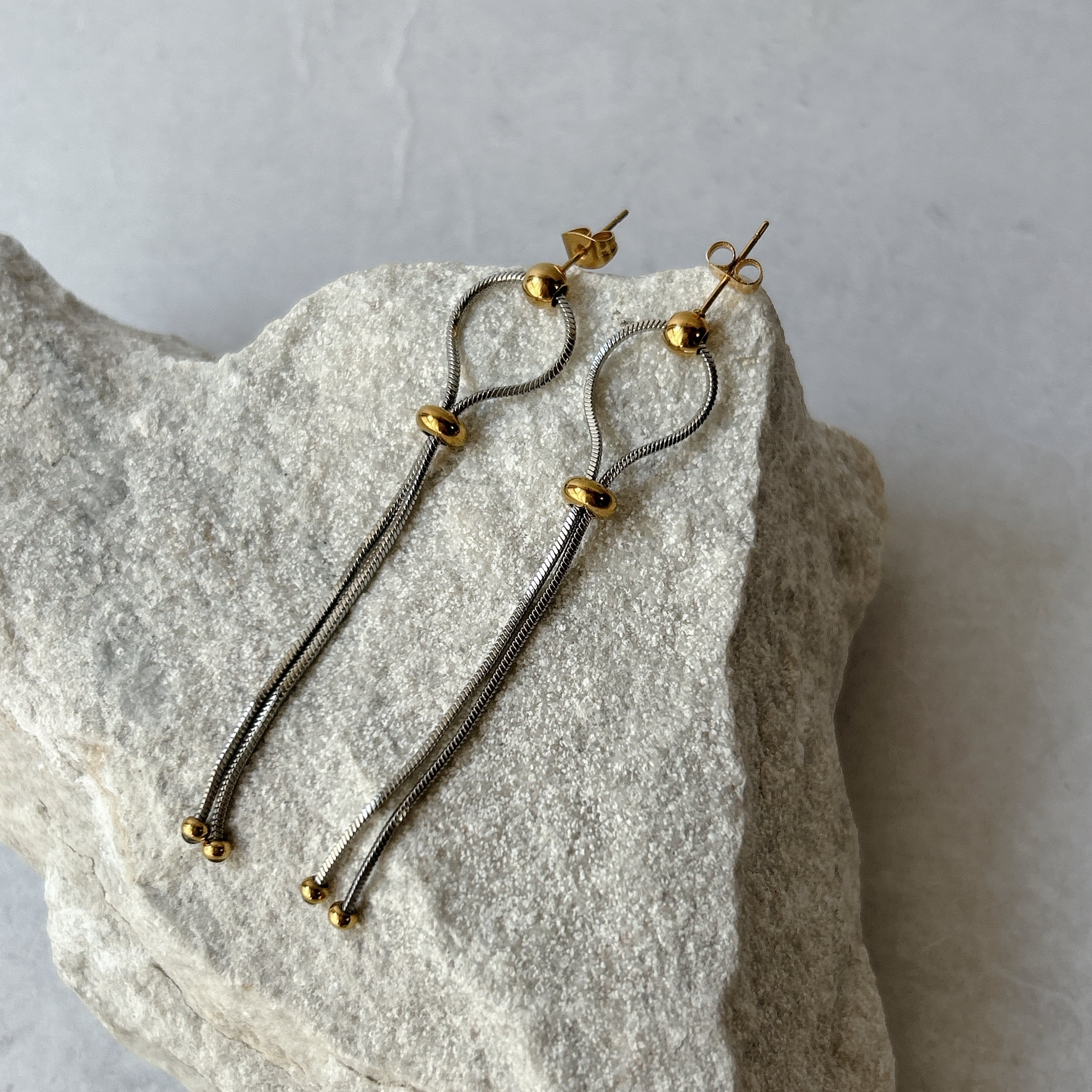 滑らかな動きが特徴のスネークチェーンを使用したピアス。